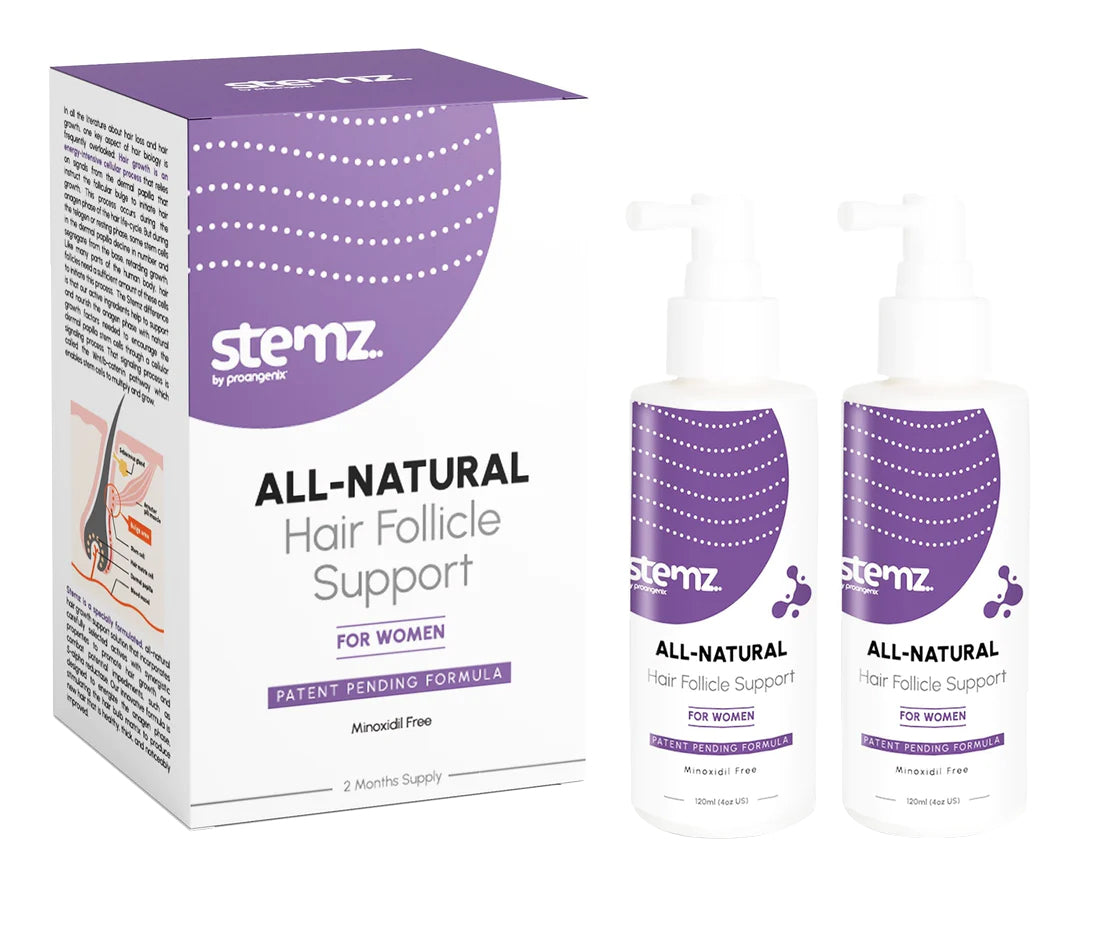 Stemz stimulates hair growth by nourishing the hair follicles and enhancing the anagen growth cycle. It does this by promoting the growth and activation of stem cells and engaging the signaling molecules and pathways linked to hair growth."