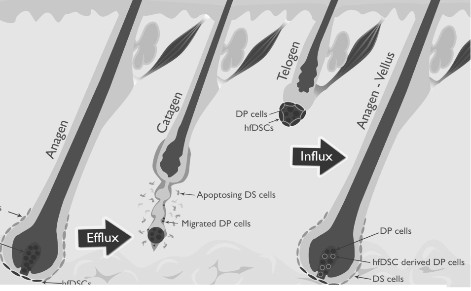 At Proangenix, we recognize that hair growth is a complex, and energy intensive process influenced by a myriad of intercellular interactions within the hair follicles. Our understanding of the biology behind hair growth has expanded significantly, with a key discovery being the role of mesenchymal stem cells (MSCs) in the dermal papilla. These pluripotent cells, residing in the dermal sheath and bulge region of the hair follicle, play a crucial role in initiating hair growth.